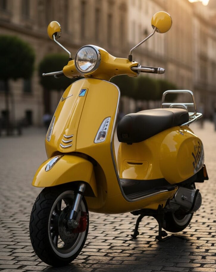 This Vespa-style electric scooter in a vibrant, eye-catching yellow is the perfect blend of classic European design and modern urban efficiency.